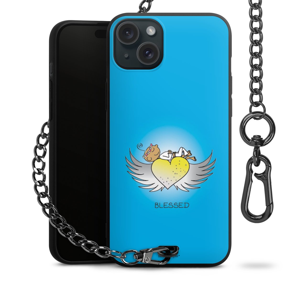 Die mattschwarze Silikon-Handyhülle besteht aus robustem TPU (thermoplastisches Polyurethan). Sie ist flexibel und schützt Dein Smartphone vor Stößen und Kratzern. Die Kette sowie der Karabinerhaken sind aus Metall in Gunmetal-Optik gefertigt. Für dieses Produkt kommen ausschließlich TÜV-geprüfte Materialien zum Einsatz.