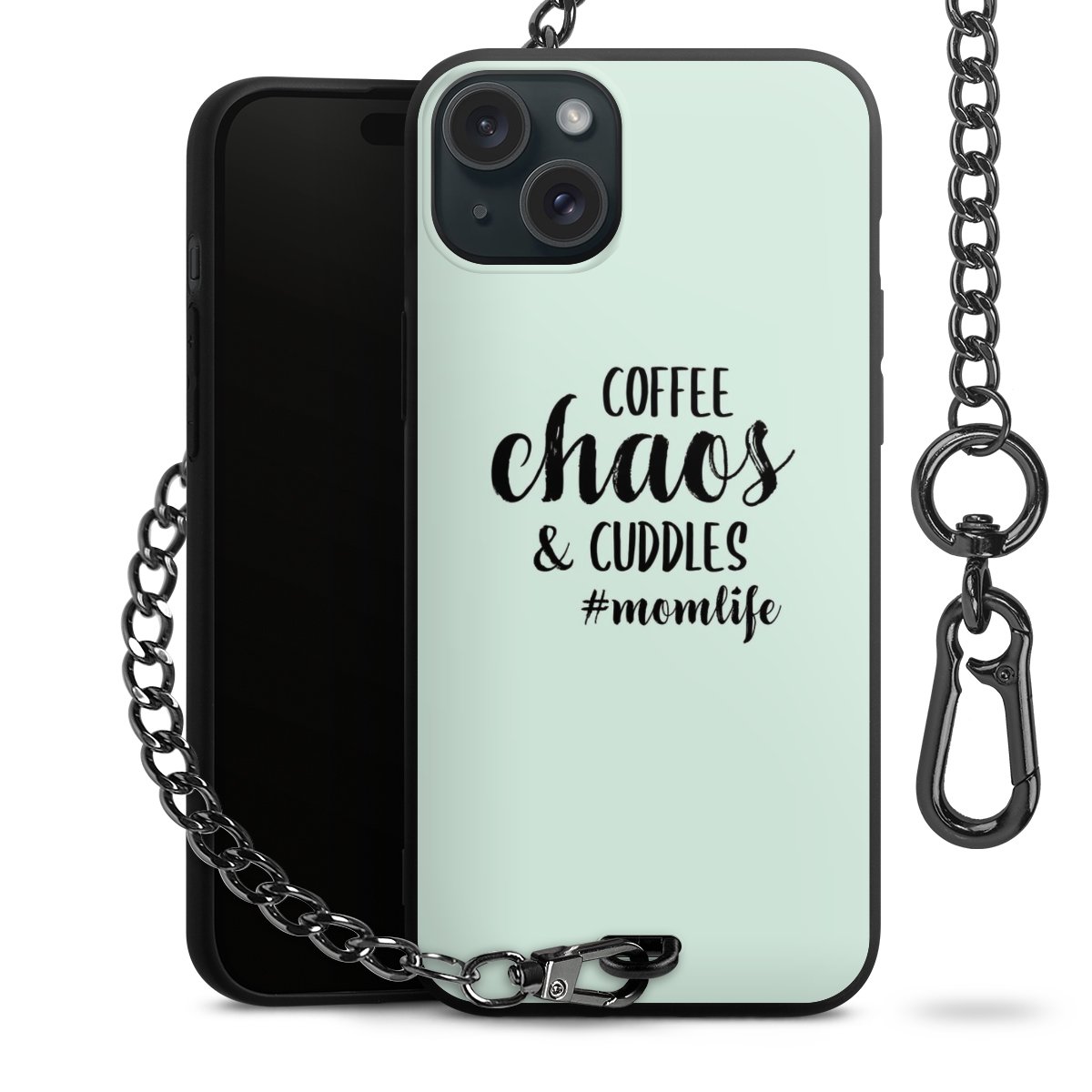 Die mattschwarze Silikon-Handyhülle besteht aus robustem TPU (thermoplastisches Polyurethan). Sie ist flexibel und schützt Dein Smartphone vor Stößen und Kratzern. Die Kette sowie der Karabinerhaken sind aus Metall in Gunmetal-Optik gefertigt. Für dieses Produkt kommen ausschließlich TÜV-geprüfte Materialien zum Einsatz.