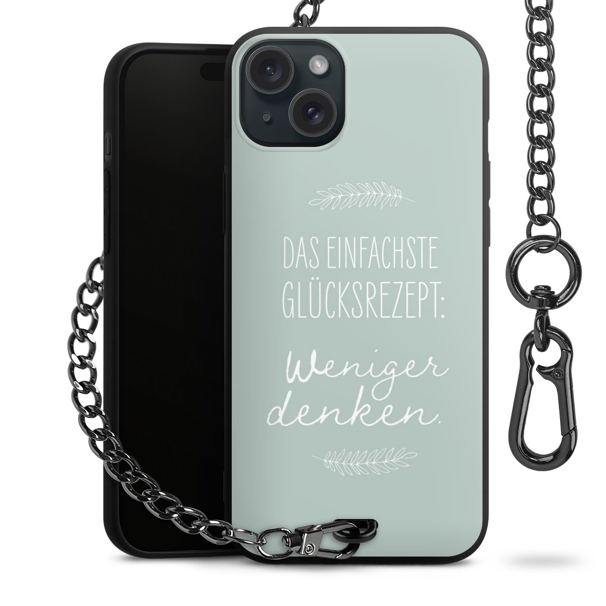 Die mattschwarze Silikon-Handyhülle besteht aus robustem TPU (thermoplastisches Polyurethan). Sie ist flexibel und schützt Dein Smartphone vor Stößen und Kratzern. Die Kette sowie der Karabinerhaken sind aus Metall in Gunmetal-Optik gefertigt. Für dieses Produkt kommen ausschließlich TÜV-geprüfte Materialien zum Einsatz.