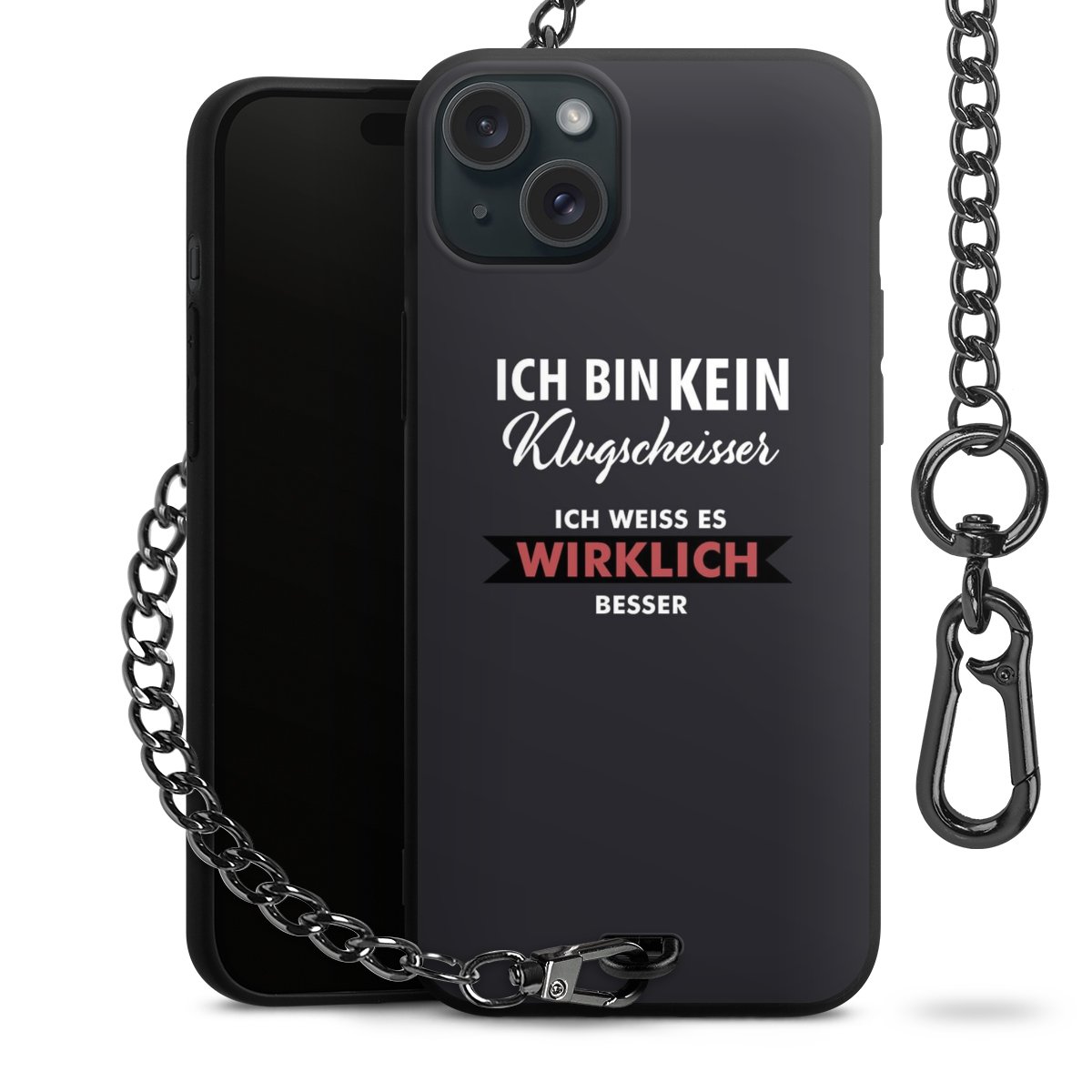 - Mattschwarze Handyhülle mit Metallkette