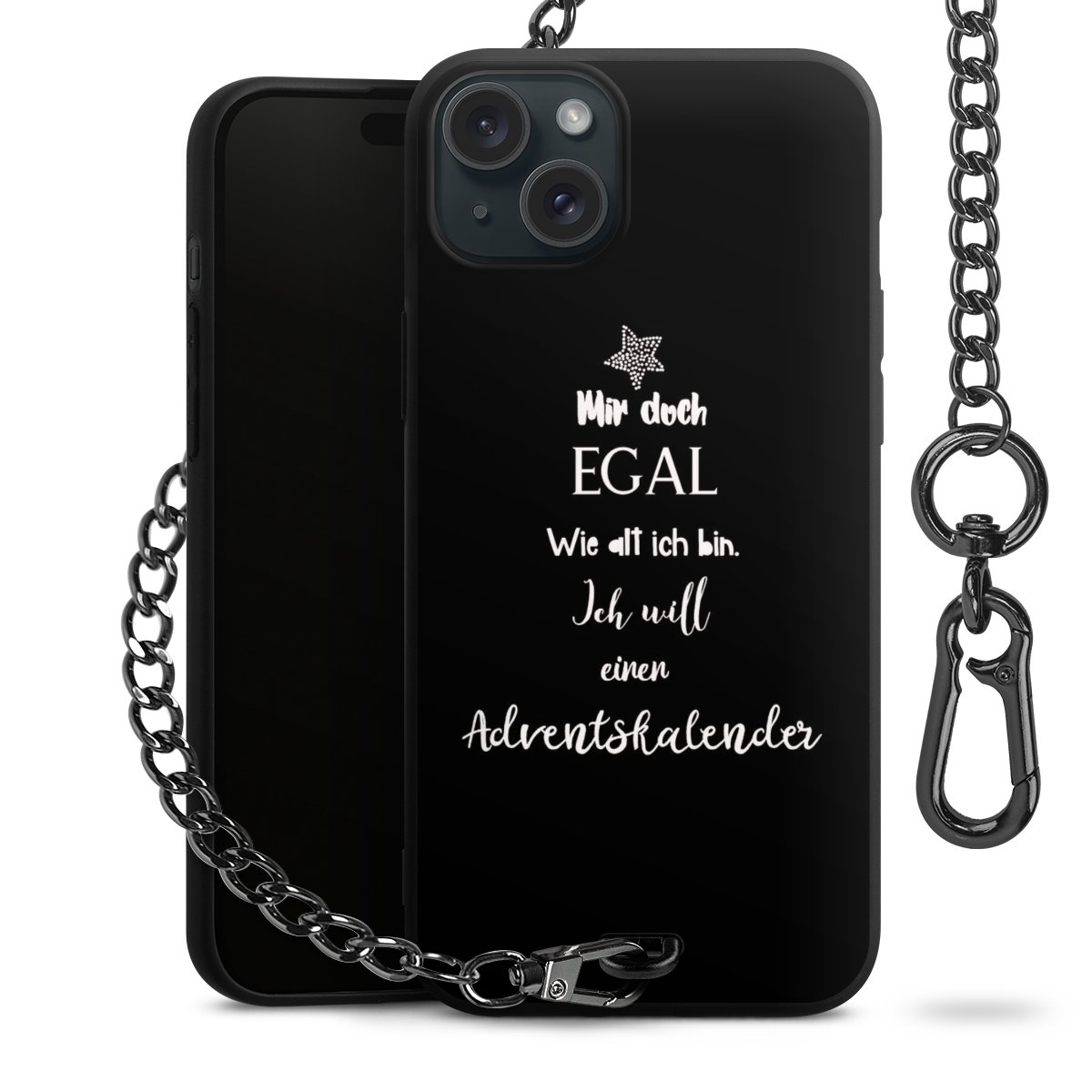 Die mattschwarze Silikon-Handyhülle besteht aus robustem TPU (thermoplastisches Polyurethan). Sie ist flexibel und schützt Dein Smartphone vor Stößen und Kratzern. Die Kette sowie der Karabinerhaken sind aus Metall in Gunmetal-Optik gefertigt. Für dieses Produkt kommen ausschließlich TÜV-geprüfte Materialien zum Einsatz.