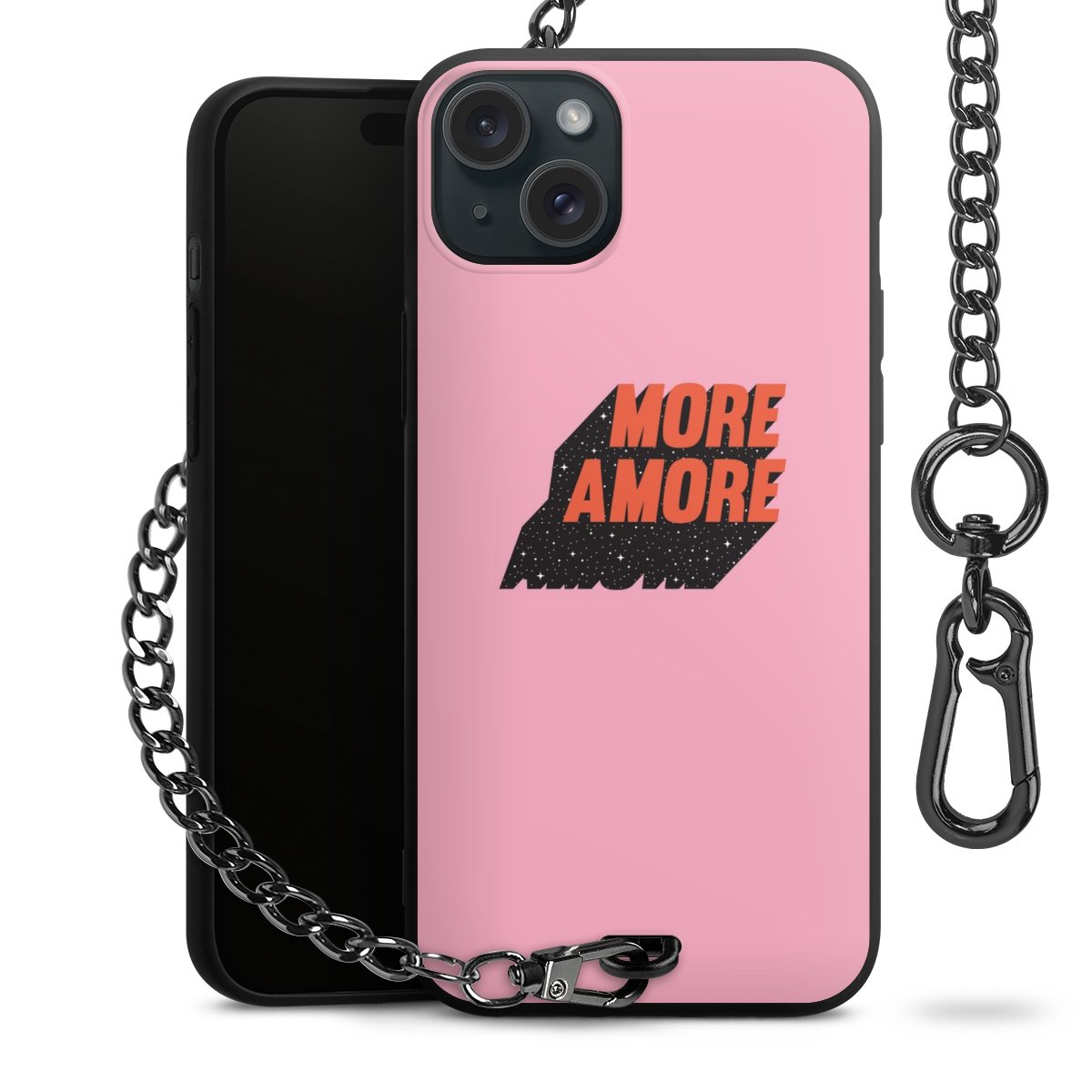 • Mattschwarze Handyhülle mit Metallkette