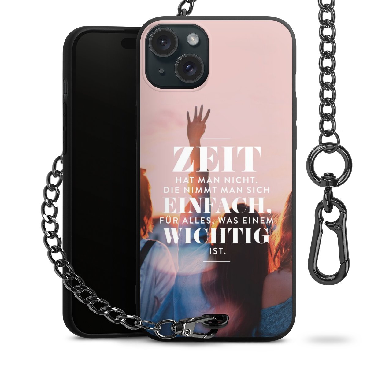 Die mattschwarze Silikon-Handyhülle besteht aus robustem TPU (thermoplastisches Polyurethan). Sie ist flexibel und schützt Dein Smartphone vor Stößen und Kratzern. Die Kette sowie der Karabinerhaken sind aus Metall in Gunmetal-Optik gefertigt. Für dieses Produkt kommen ausschließlich TÜV-geprüfte Materialien zum Einsatz.
