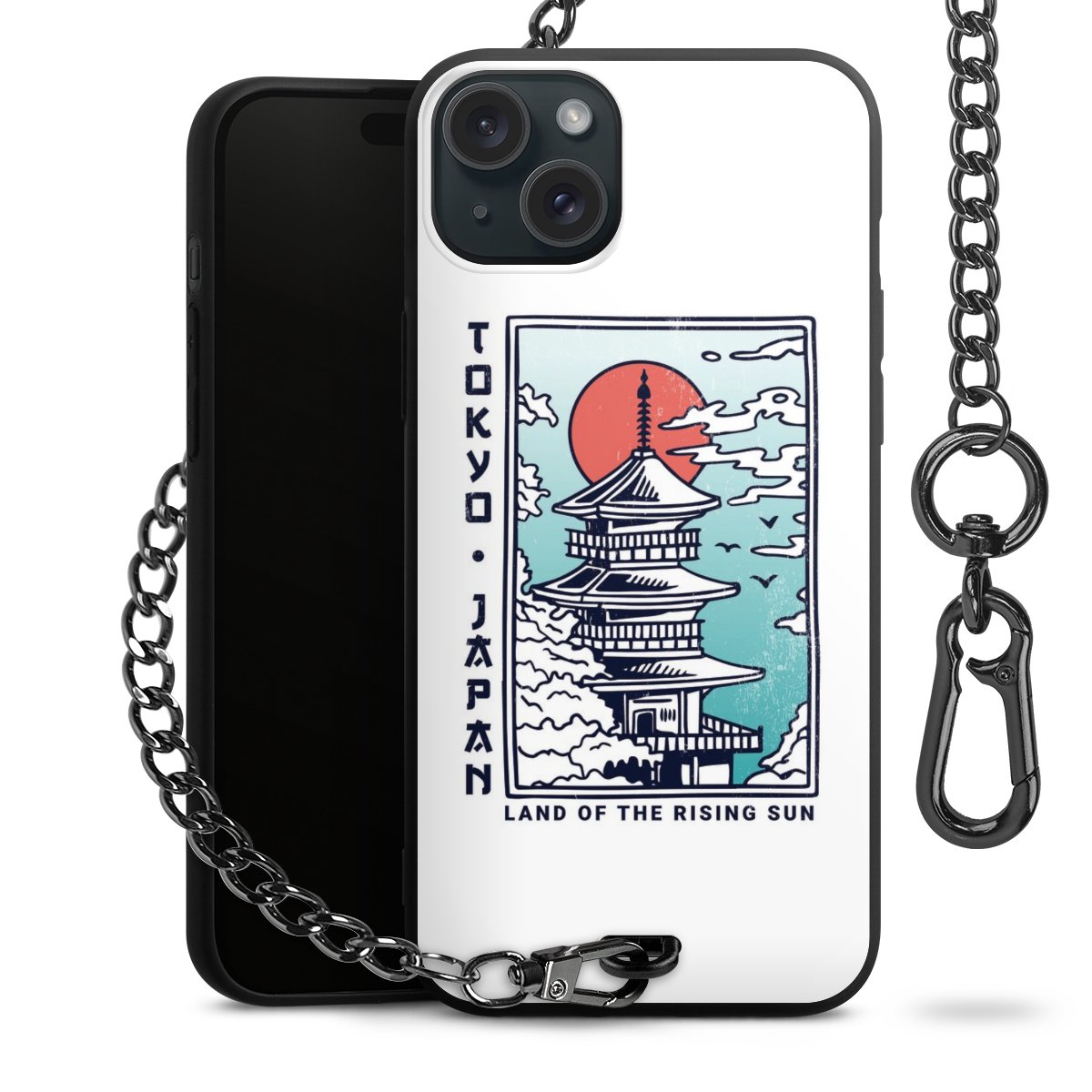 Die mattschwarze Silikon-Handyhülle besteht aus robustem TPU (thermoplastisches Polyurethan). Sie ist flexibel und schützt Dein Smartphone vor Stößen und Kratzern. Die Kette sowie der Karabinerhaken sind aus Metall in Gunmetal-Optik gefertigt. Für dieses Produkt kommen ausschließlich TÜV-geprüfte Materialien zum Einsatz.