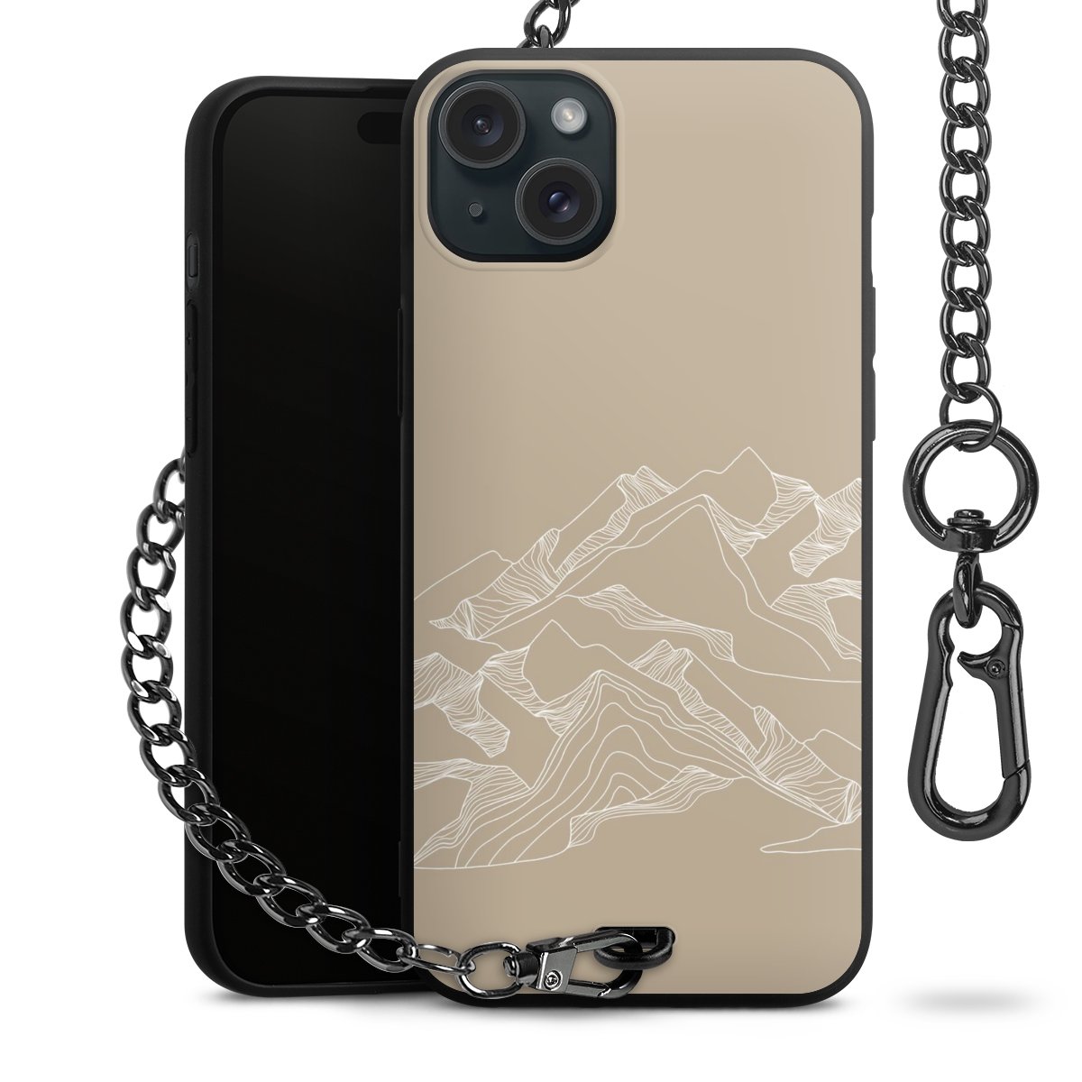 - Mattschwarze Handyhülle mit Metallkette