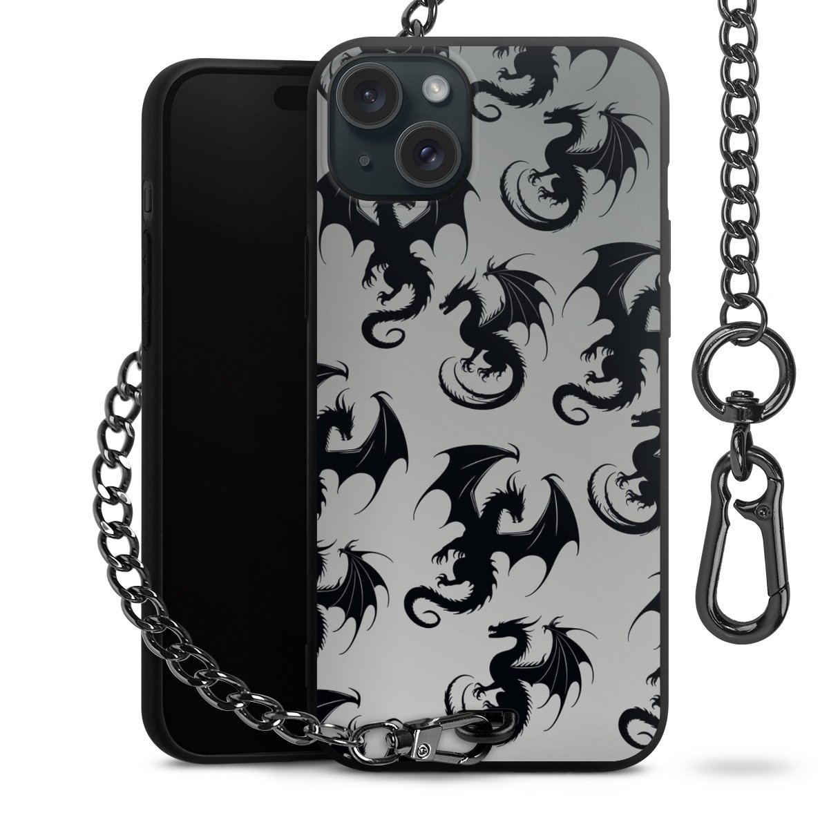 • Mattschwarze Handyhülle mit Metallkette