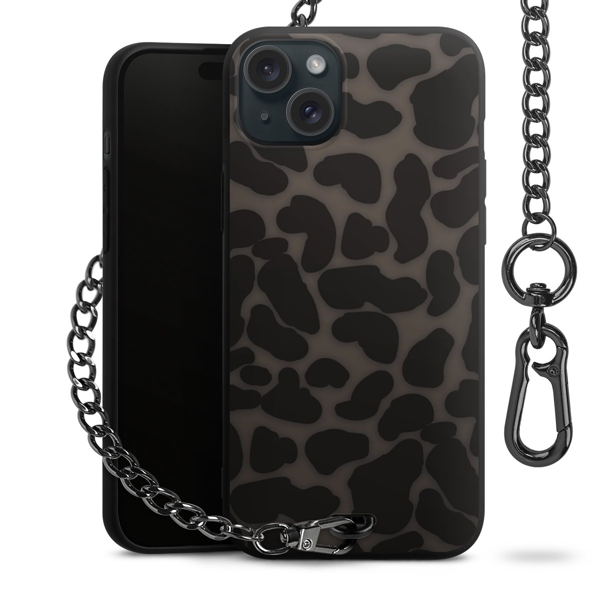 • Mattschwarze Handyhülle mit Metallkette