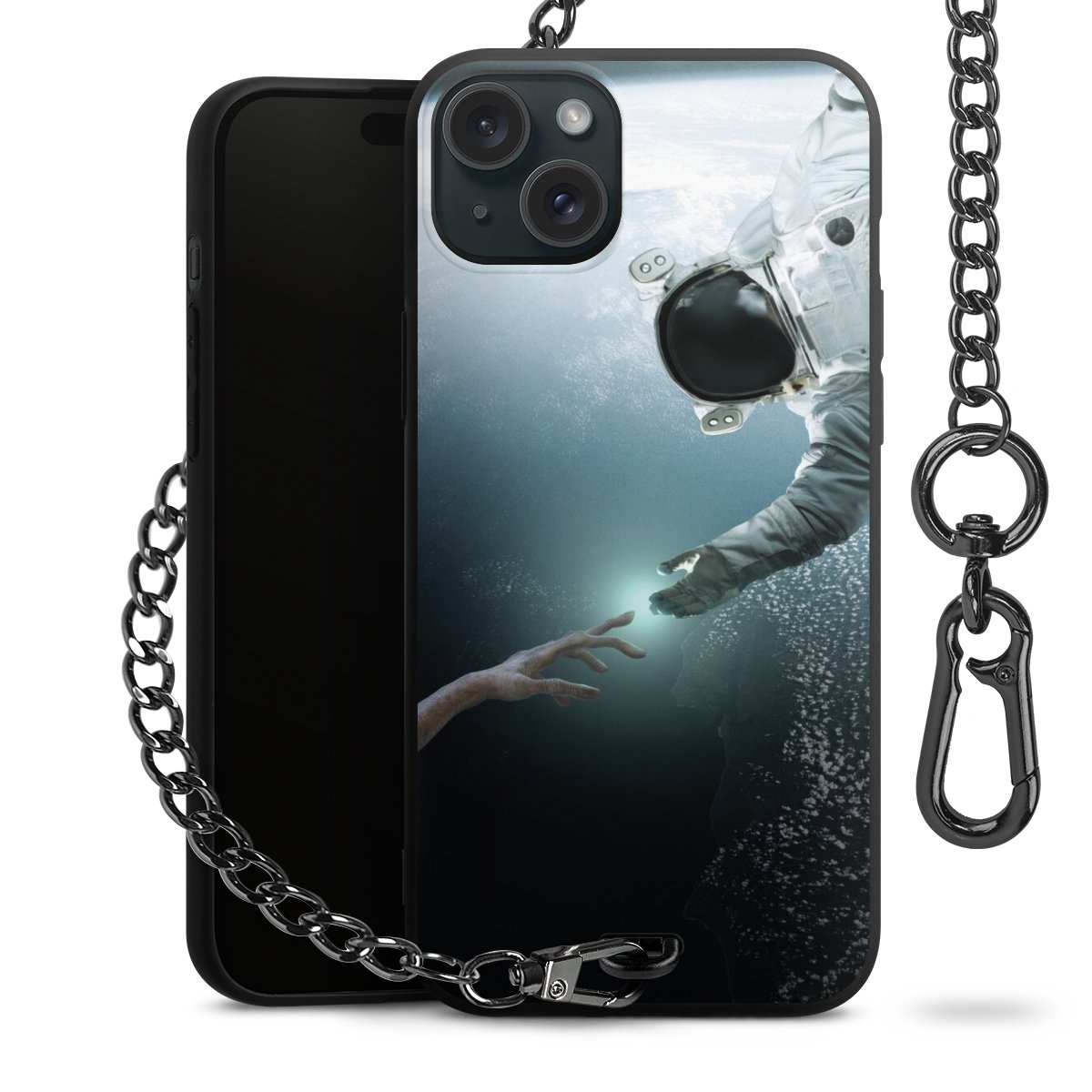 - Mattschwarze Handyhülle mit Metallkette