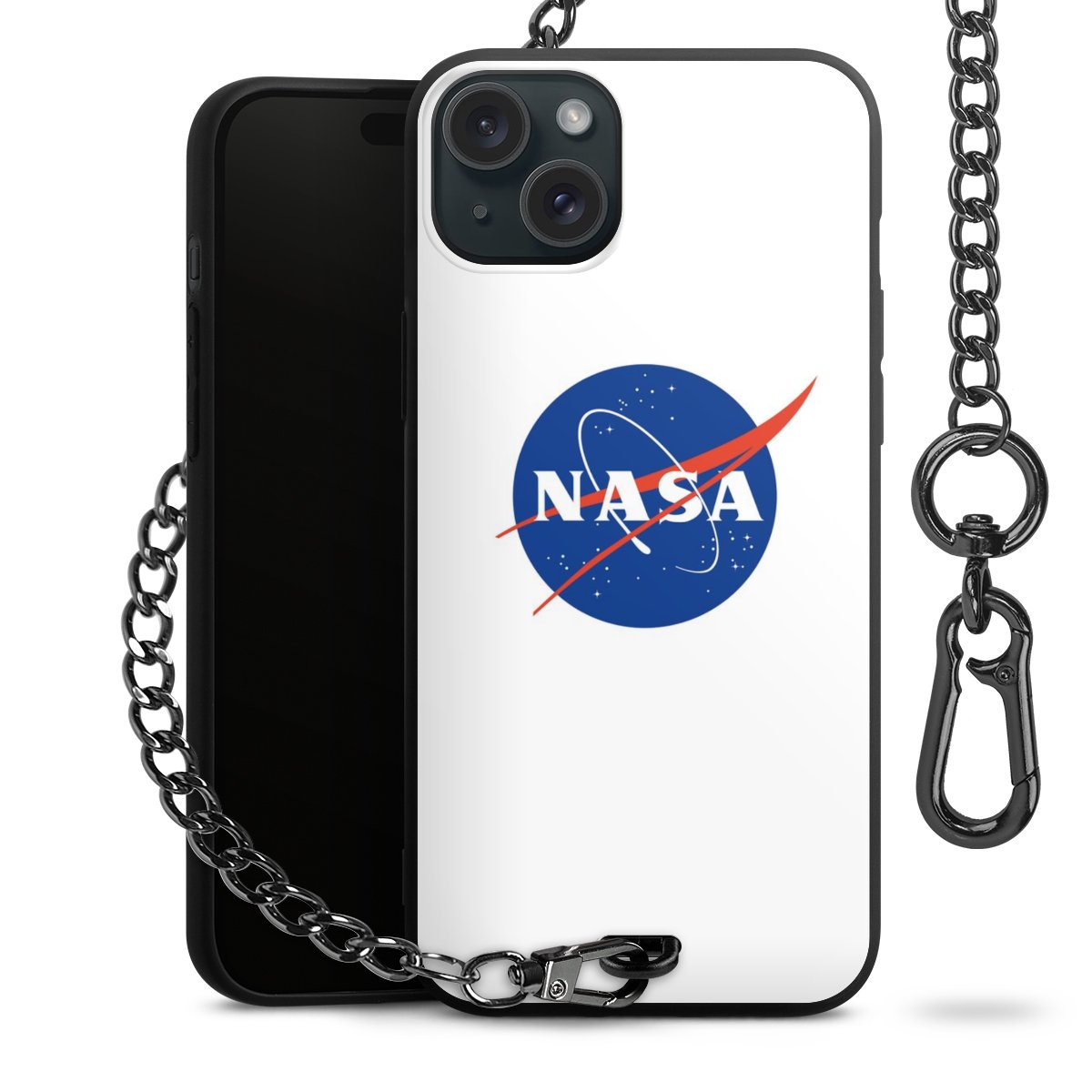 • Mattschwarze Handyhülle mit Metallkette