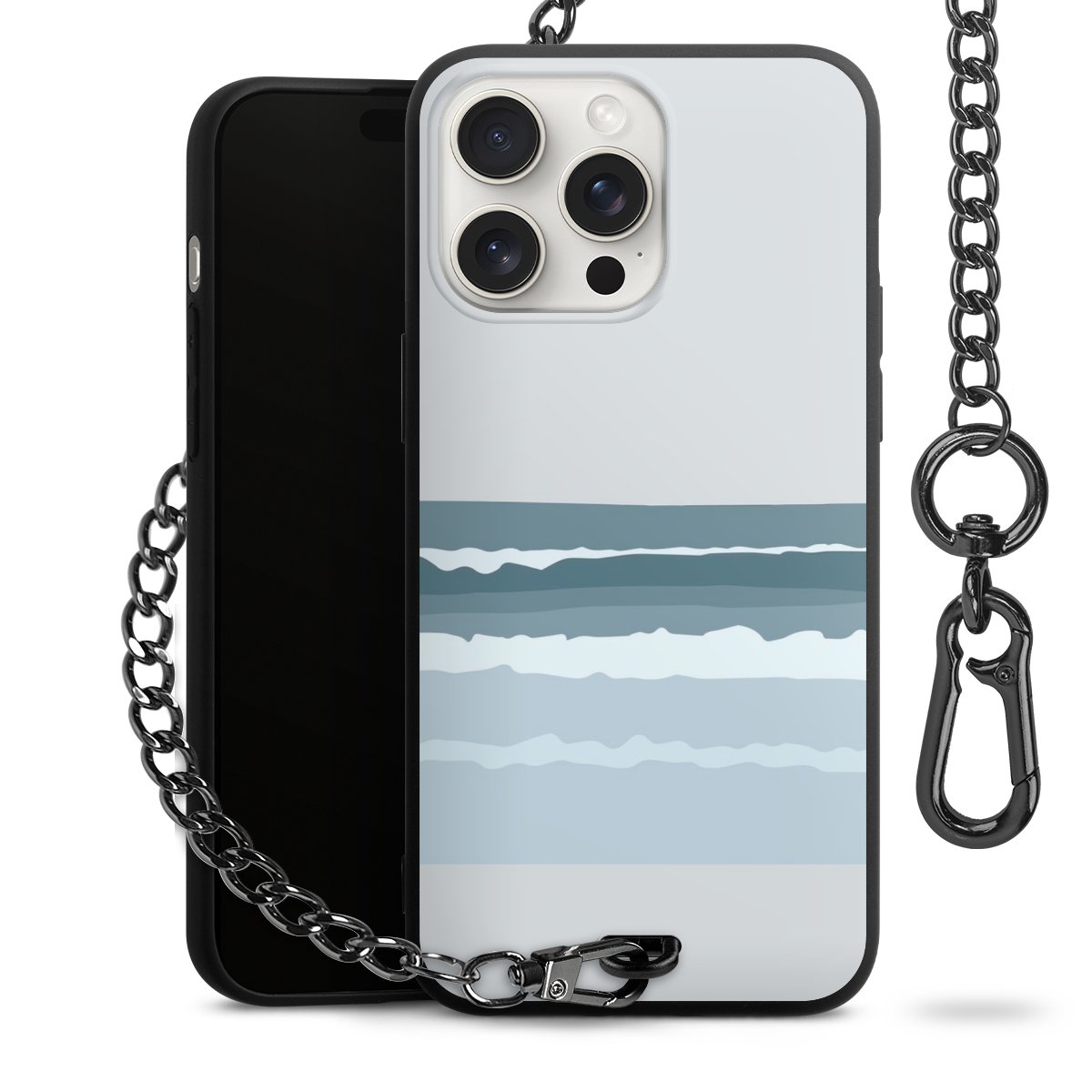 - Mattschwarze Handyhülle mit Metallkette