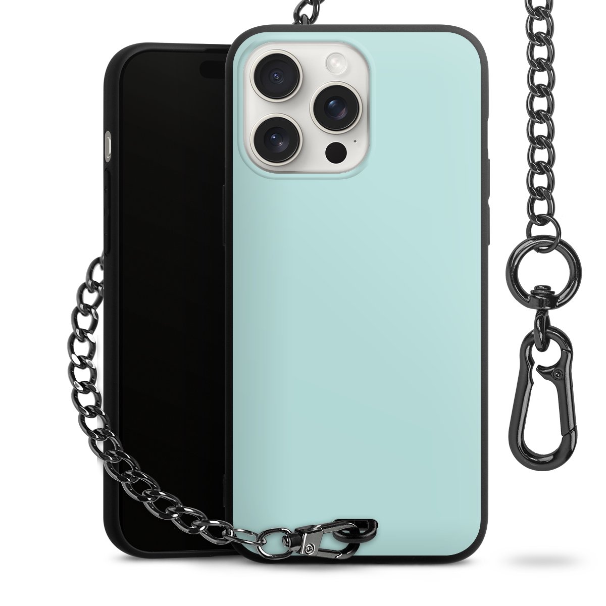 - Mattschwarze Handyhülle mit Metallkette