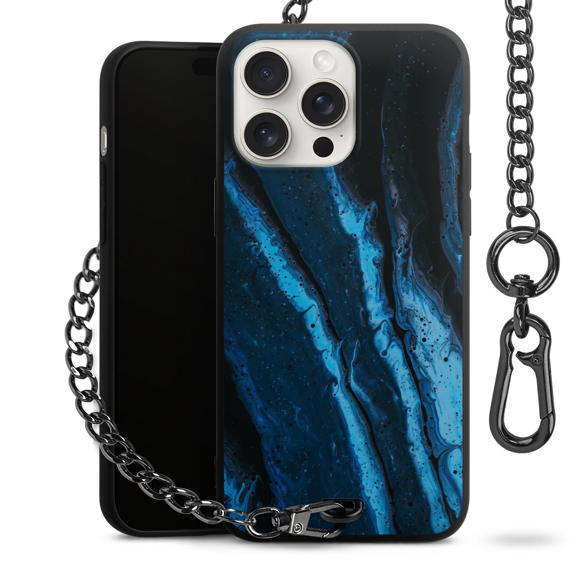 - Mattschwarze Handyhülle mit Metallkette