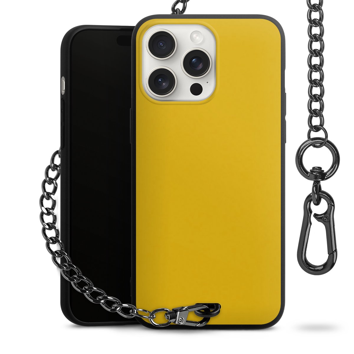 • Mattschwarze Handyhülle mit Metallkette