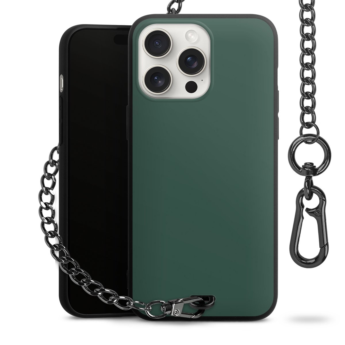 - Mattschwarze Handyhülle mit Metallkette
