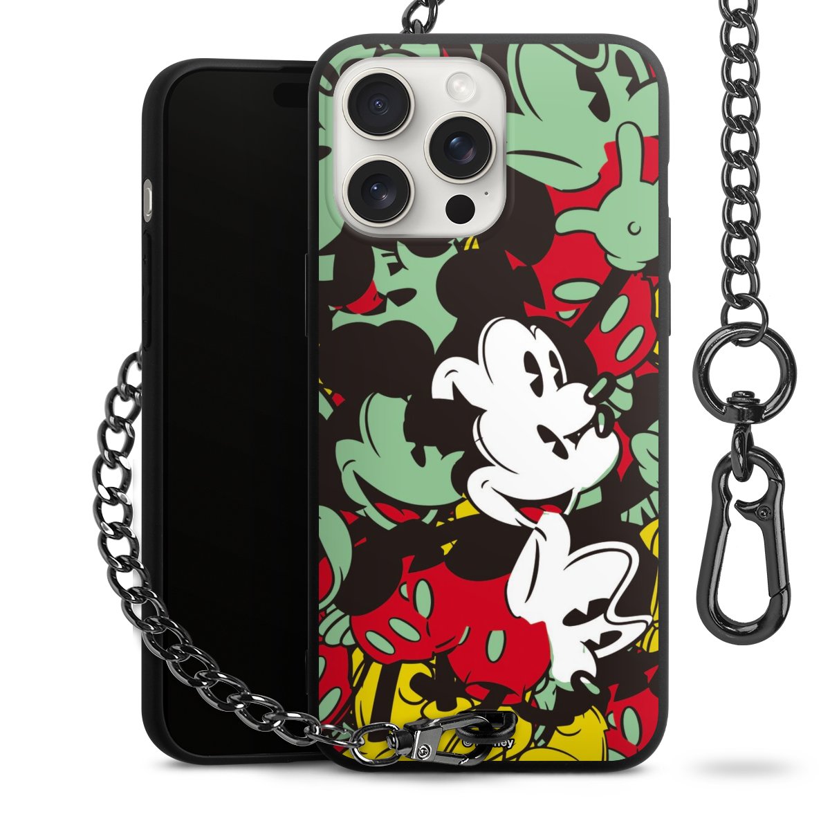 Die Handyhülle verfügt über eine mittig am unteren Rand platzierte Öse, an der die Metallkette stabil befestigt ist. Bestelle die Hülle einfach für Dein Smartphone-Modell, dann passt sie wie angegossen und Du brauchst sie bloß einmal anzudrücken. Handy in die Tasche, Karabiner an den Hosenbund – schon kann die Party starten.