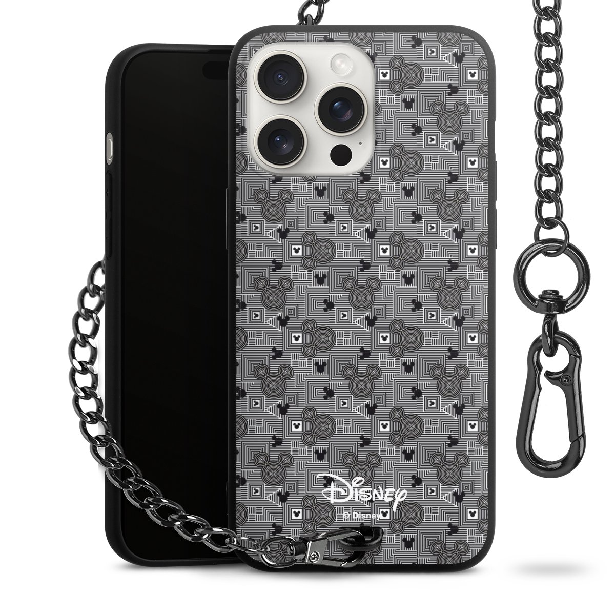 • Mattschwarze Handyhülle mit Metallkette