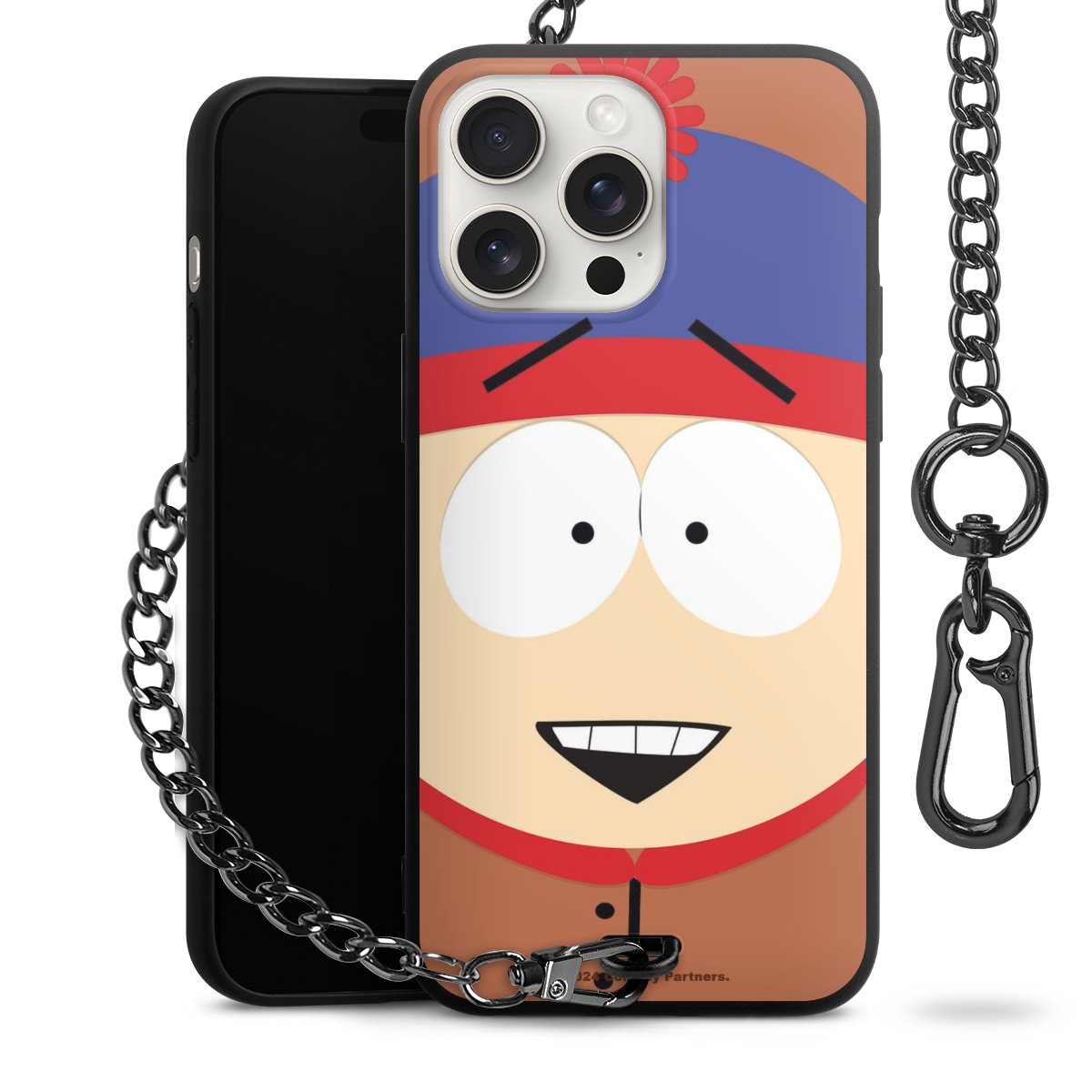 - Mattschwarze Handyhülle mit Metallkette