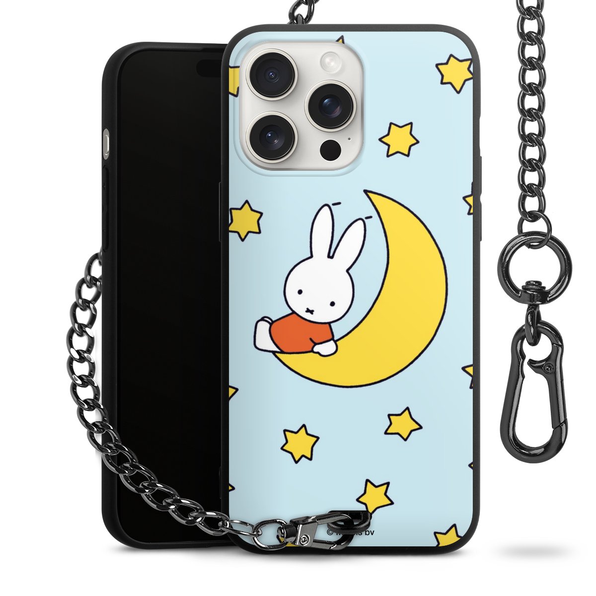 Die Handyhülle verfügt über eine mittig am unteren Rand platzierte Öse, an der die Metallkette stabil befestigt ist. Bestelle die Hülle einfach für Dein Smartphone-Modell, dann passt sie wie angegossen und Du brauchst sie bloß einmal anzudrücken. Handy in die Tasche, Karabiner an den Hosenbund – schon kann die Party starten.