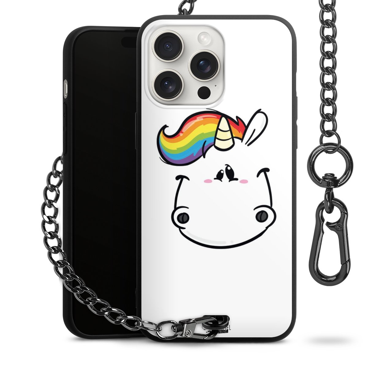 Die mattschwarze Silikon-Handyhülle besteht aus robustem TPU (thermoplastisches Polyurethan). Sie ist flexibel und schützt Dein Smartphone vor Stößen und Kratzern. Die Kette sowie der Karabinerhaken sind aus Metall in Gunmetal-Optik gefertigt. Für dieses Produkt kommen ausschließlich TÜV-geprüfte Materialien zum Einsatz.