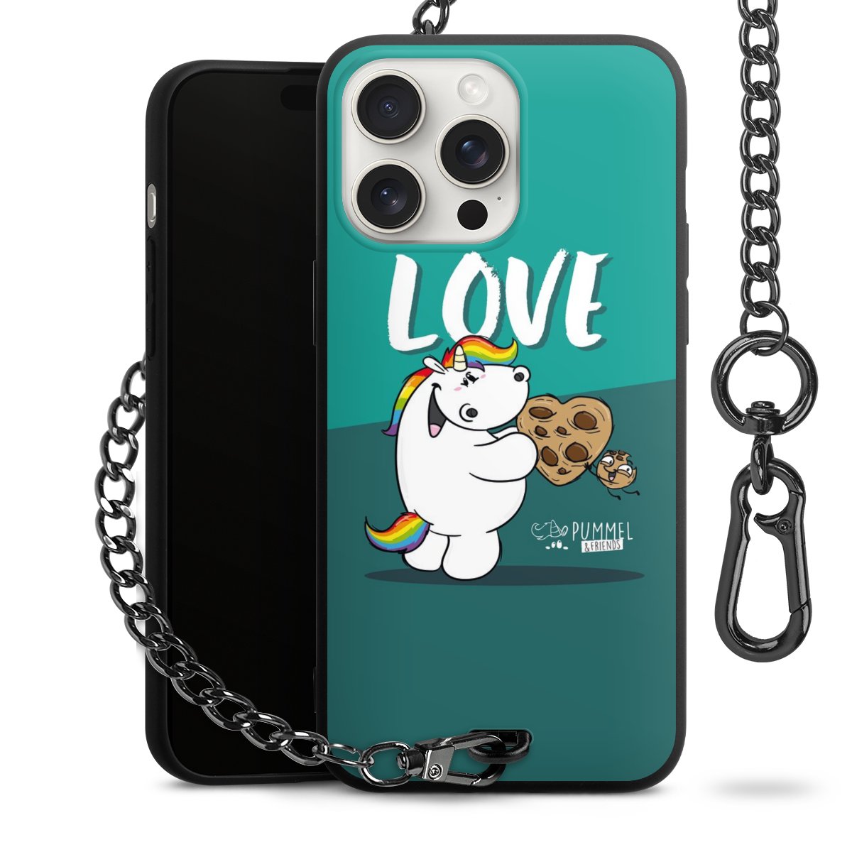 Die mattschwarze Silikon-Handyhülle besteht aus robustem TPU (thermoplastisches Polyurethan). Sie ist flexibel und schützt Dein Smartphone vor Stößen und Kratzern. Die Kette sowie der Karabinerhaken sind aus Metall in Gunmetal-Optik gefertigt. Für dieses Produkt kommen ausschließlich TÜV-geprüfte Materialien zum Einsatz.
