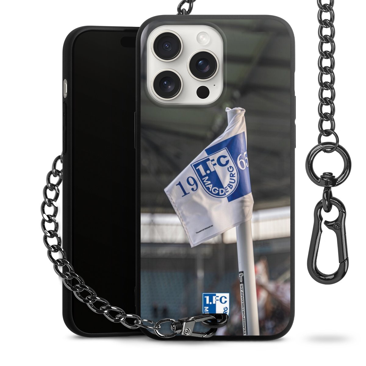 Die Handyhülle verfügt über eine mittig am unteren Rand platzierte Öse, an der die Metallkette stabil befestigt ist. Bestelle die Hülle einfach für Dein Smartphone-Modell, dann passt sie wie angegossen und Du brauchst sie bloß einmal anzudrücken. Handy in die Tasche, Karabiner an den Hosenbund – schon kann die Party starten.