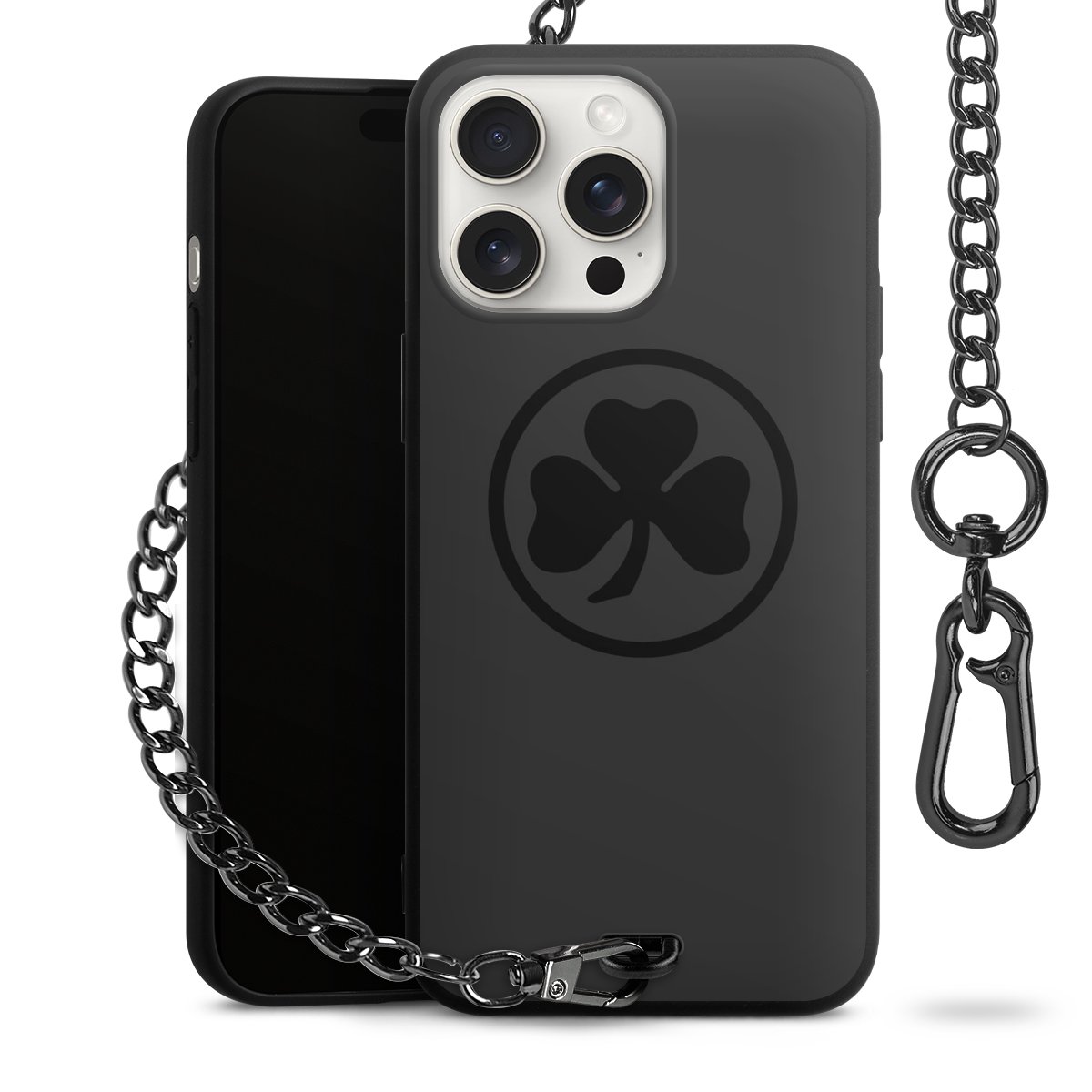 • Mattschwarze Handyhülle mit Metallkette