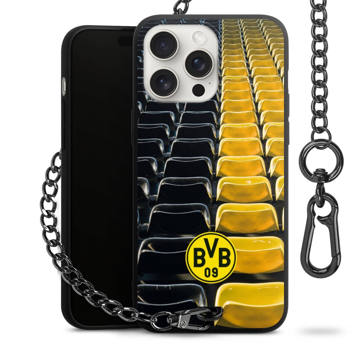 Die mattschwarze Silikon-Handyhülle besteht aus robustem TPU (thermoplastisches Polyurethan). Sie ist flexibel und schützt Dein Smartphone vor Stößen und Kratzern. Die Kette sowie der Karabinerhaken sind aus Metall in Gunmetal-Optik gefertigt. Für dieses Produkt kommen ausschließlich TÜV-geprüfte Materialien zum Einsatz.