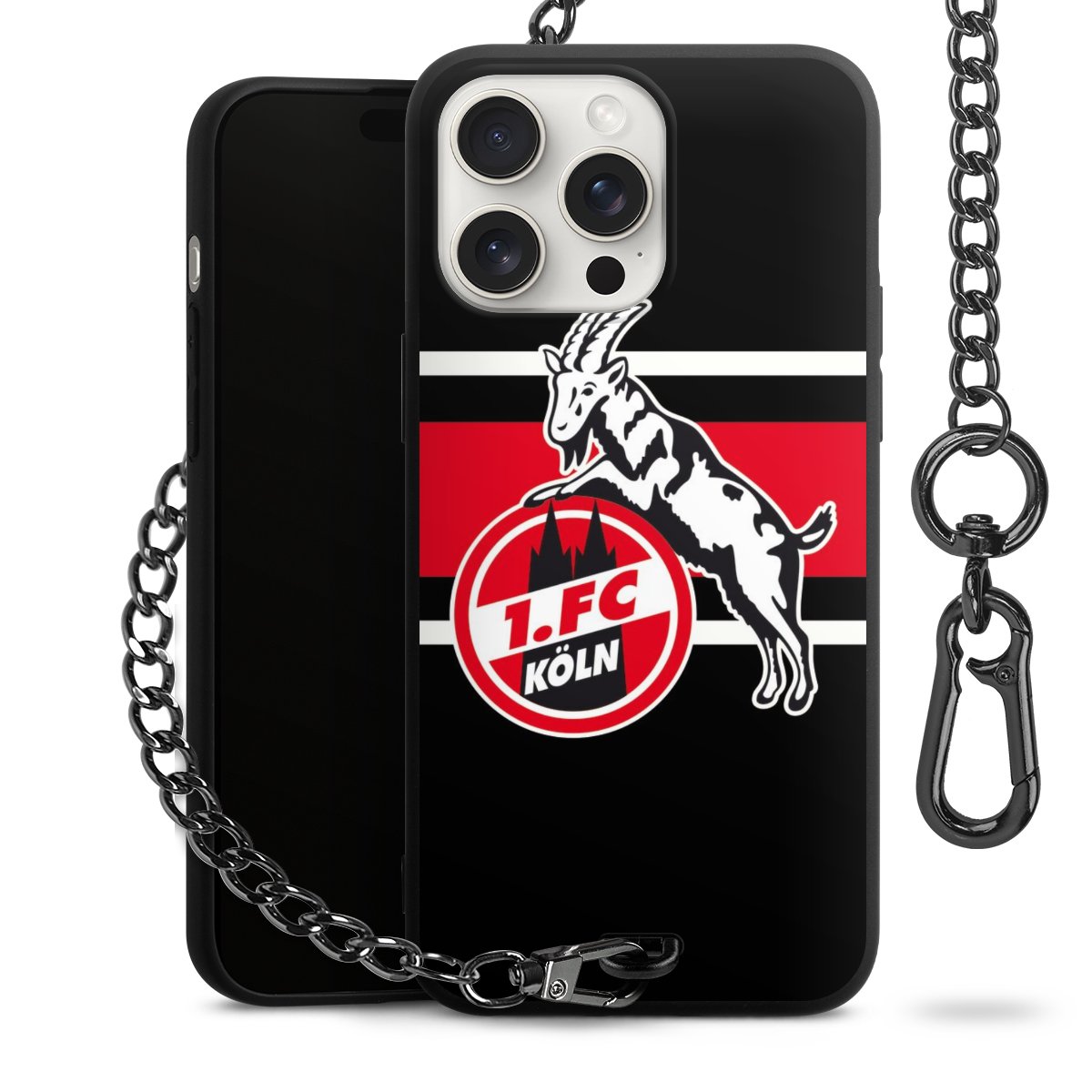 Die Handyhülle verfügt über eine mittig am unteren Rand platzierte Öse, an der die Metallkette stabil befestigt ist. Bestelle die Hülle einfach für Dein Smartphone-Modell, dann passt sie wie angegossen und Du brauchst sie bloß einmal anzudrücken. Handy in die Tasche, Karabiner an den Hosenbund – schon kann die Party starten.