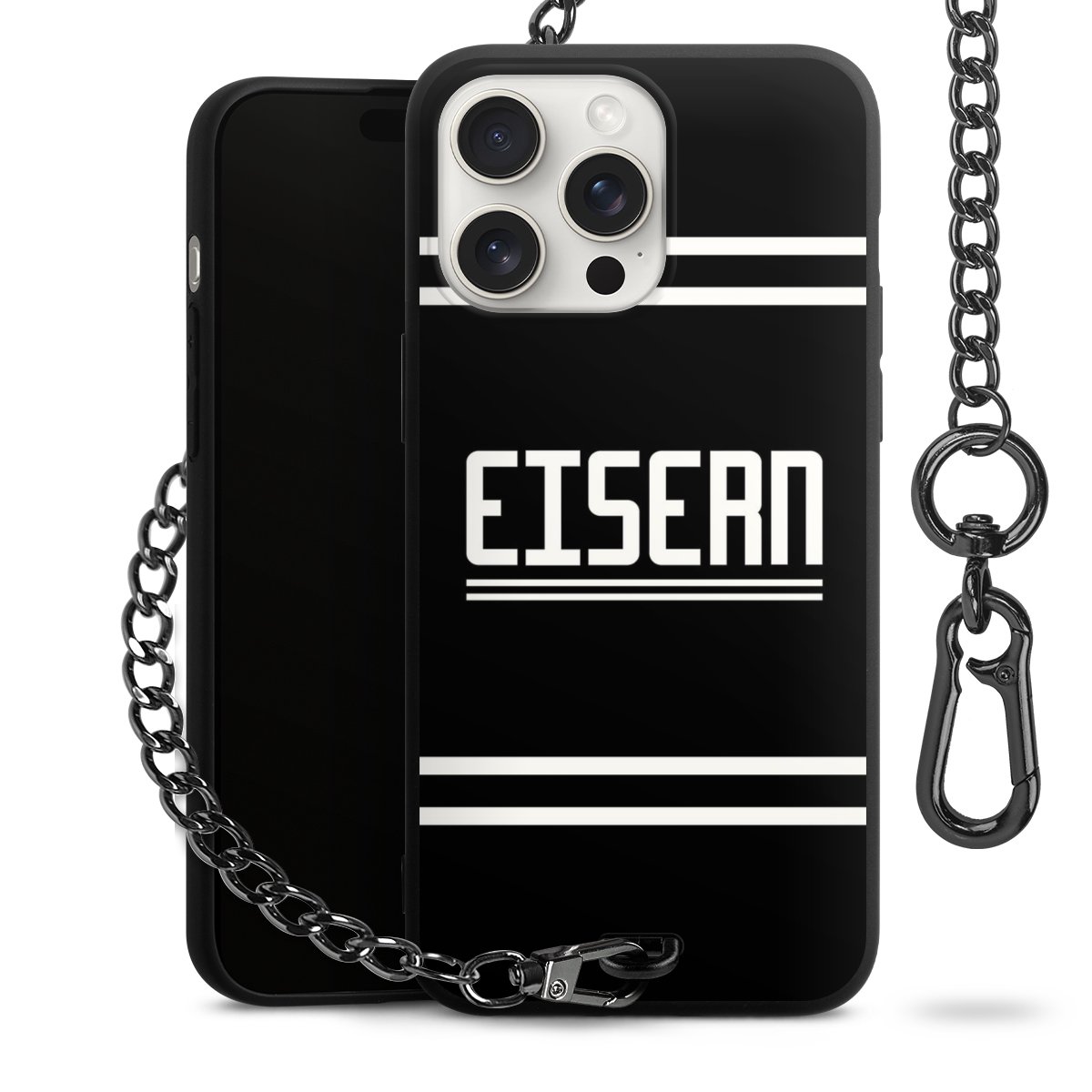 • Mattschwarze Handyhülle mit Metallkette