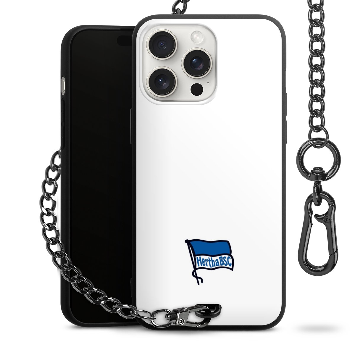Die mattschwarze Silikon-Handyhülle besteht aus robustem TPU (thermoplastisches Polyurethan). Sie ist flexibel und schützt Dein Smartphone vor Stößen und Kratzern. Die Kette sowie der Karabinerhaken sind aus Metall in Gunmetal-Optik gefertigt. Für dieses Produkt kommen ausschließlich TÜV-geprüfte Materialien zum Einsatz.