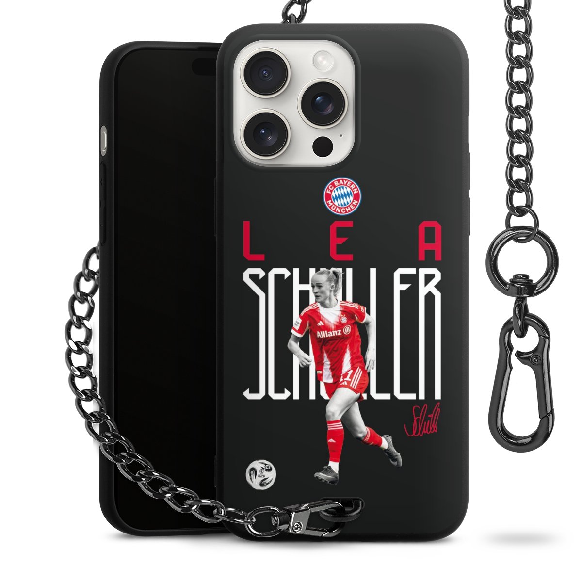 • Mattschwarze Handyhülle mit Metallkette