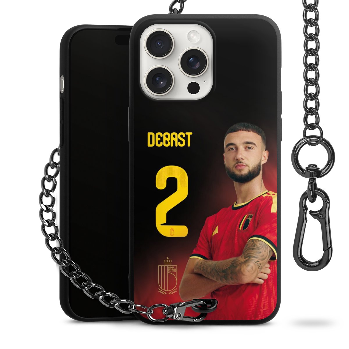 Die mattschwarze Silikon-Handyhülle besteht aus robustem TPU (thermoplastisches Polyurethan). Sie ist flexibel und schützt Dein Smartphone vor Stößen und Kratzern. Die Kette sowie der Karabinerhaken sind aus Metall in Gunmetal-Optik gefertigt. Für dieses Produkt kommen ausschließlich TÜV-geprüfte Materialien zum Einsatz.