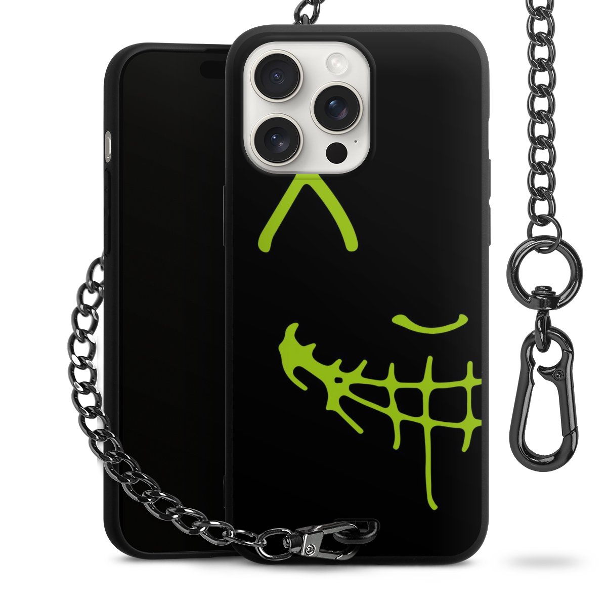 Die mattschwarze Silikon-Handyhülle besteht aus robustem TPU (thermoplastisches Polyurethan). Sie ist flexibel und schützt Dein Smartphone vor Stößen und Kratzern. Die Kette sowie der Karabinerhaken sind aus Metall in Gunmetal-Optik gefertigt. Für dieses Produkt kommen ausschließlich TÜV-geprüfte Materialien zum Einsatz.