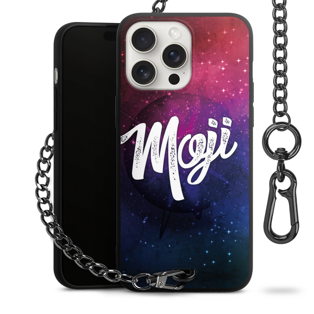 • Mattschwarze Handyhülle mit Metallkette