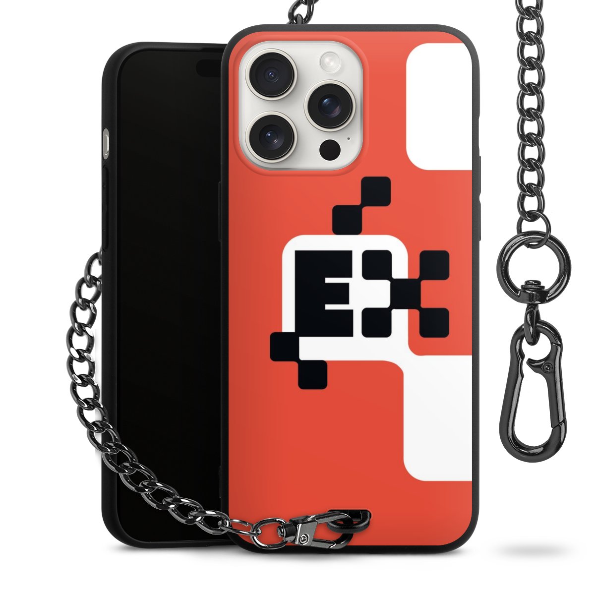 Ob im Alltag, beim Feiern mit Deinen Jungs oder auf Festivals – mit dem superpraktischen Belt Case steckst Du alle Sorgen um Diebstahl und Spider-App ganz entspannt in die Tasche. Es besteht aus einem coolen mattschwarzen Silikon Premium Case, dem Du ein individuelles Design verpassen kannst, und einer daran befestigten Kette in lässiger Gunmetal-Optik. Mit dem Karabiner auf der anderen Seite klickst Du die Kette mit einem Handgriff an Deine Gürtelschlaufe und schon ist Dein Smartphone sicher und stets griffbereit in der Hosentasche verstaut.