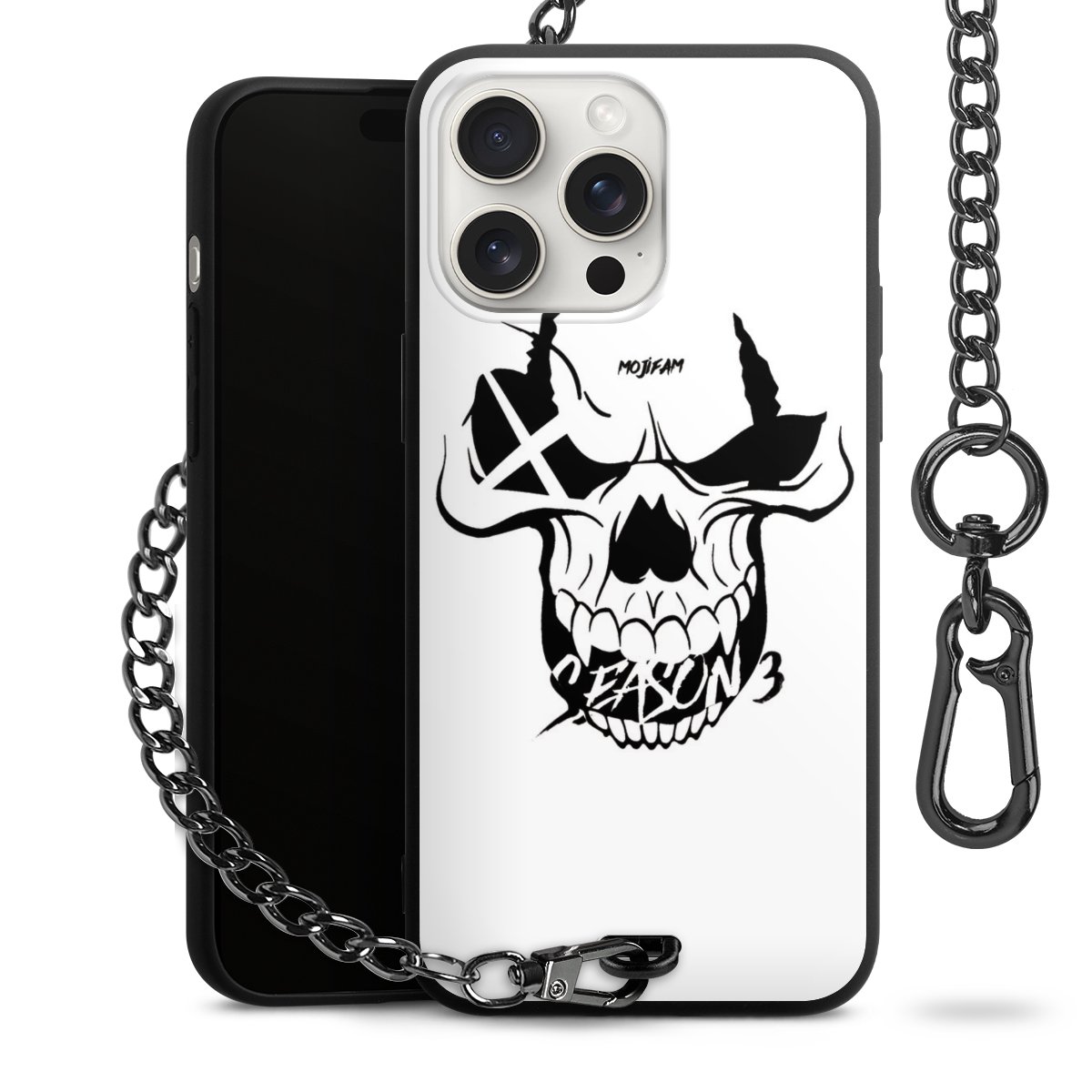 • Mattschwarze Handyhülle mit Metallkette