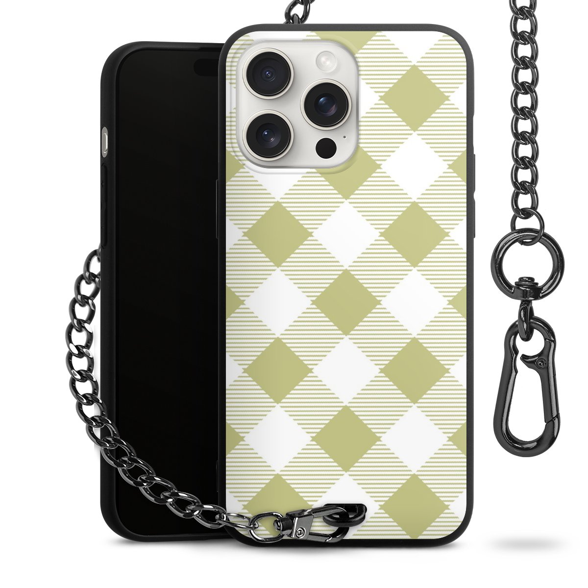 Die mattschwarze Silikon-Handyhülle besteht aus robustem TPU (thermoplastisches Polyurethan). Sie ist flexibel und schützt Dein Smartphone vor Stößen und Kratzern. Die Kette sowie der Karabinerhaken sind aus Metall in Gunmetal-Optik gefertigt. Für dieses Produkt kommen ausschließlich TÜV-geprüfte Materialien zum Einsatz.