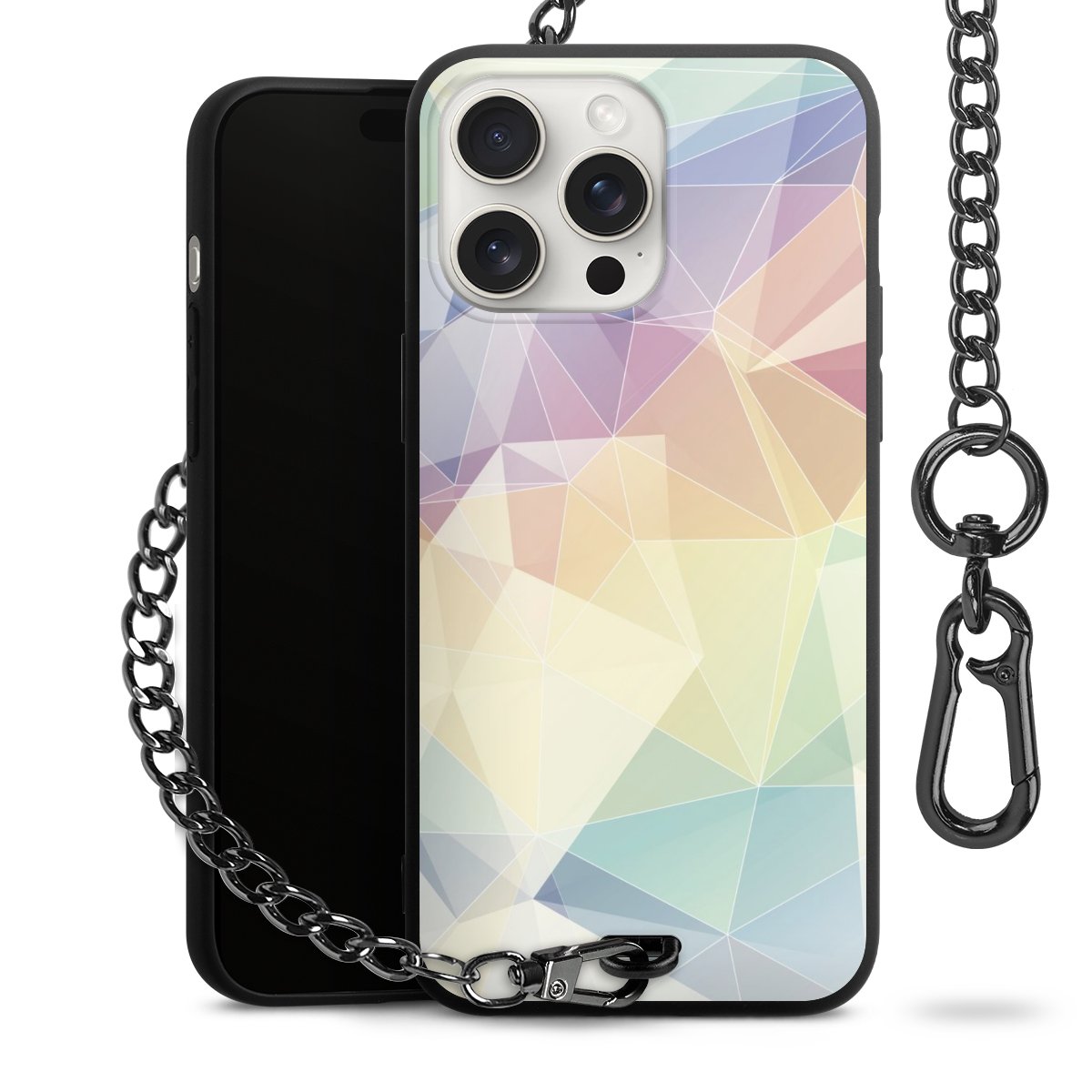 Die mattschwarze Silikon-Handyhülle besteht aus robustem TPU (thermoplastisches Polyurethan). Sie ist flexibel und schützt Dein Smartphone vor Stößen und Kratzern. Die Kette sowie der Karabinerhaken sind aus Metall in Gunmetal-Optik gefertigt. Für dieses Produkt kommen ausschließlich TÜV-geprüfte Materialien zum Einsatz.