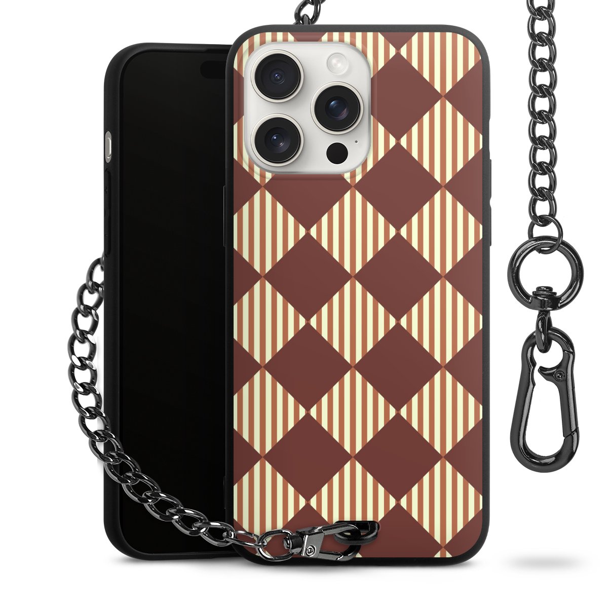 - Mattschwarze Handyhülle mit Metallkette