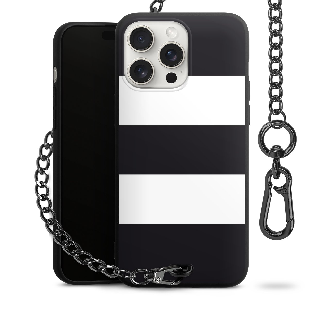 - Mattschwarze Handyhülle mit Metallkette