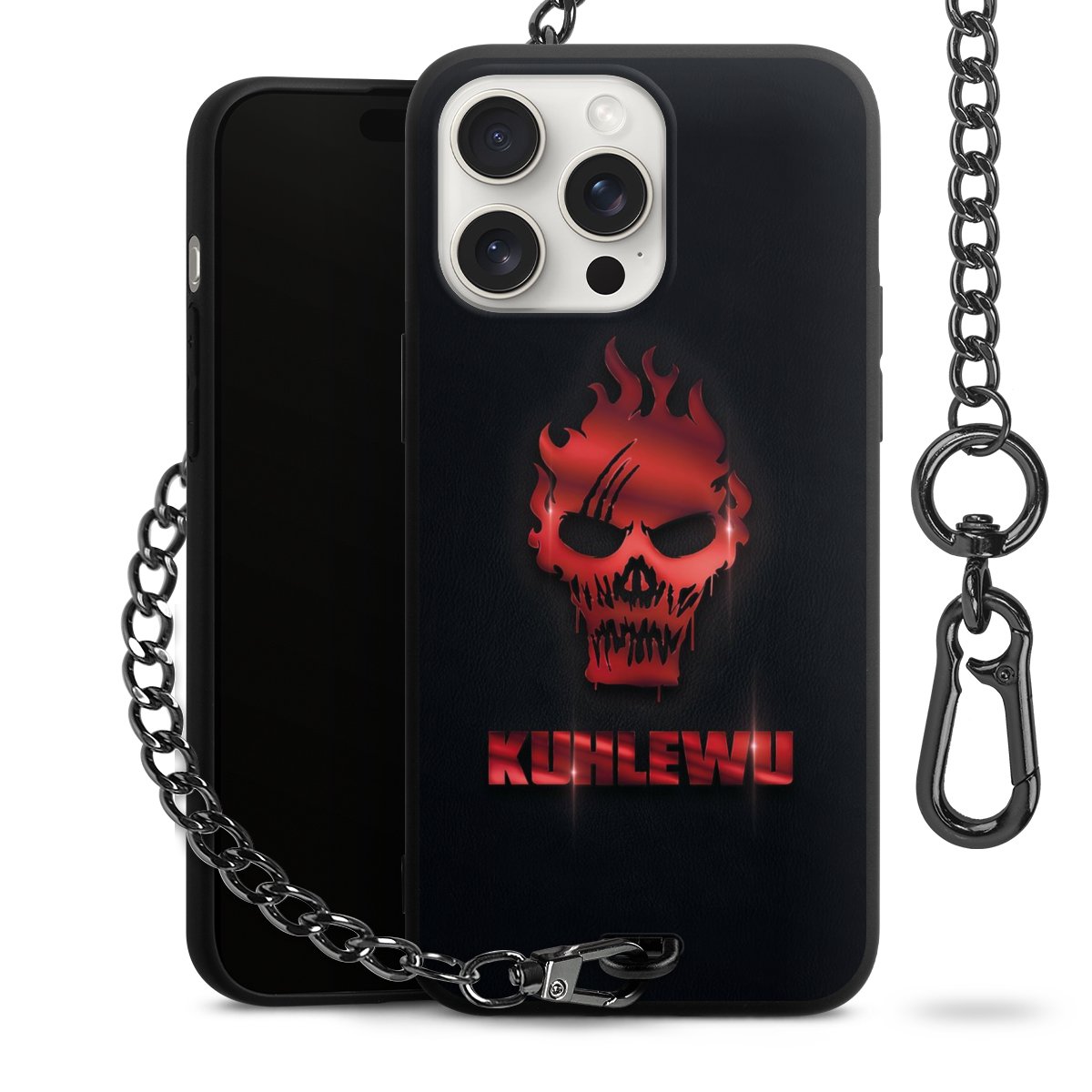 Die mattschwarze Silikon-Handyhülle besteht aus robustem TPU (thermoplastisches Polyurethan). Sie ist flexibel und schützt Dein Smartphone vor Stößen und Kratzern. Die Kette sowie der Karabinerhaken sind aus Metall in Gunmetal-Optik gefertigt. Für dieses Produkt kommen ausschließlich TÜV-geprüfte Materialien zum Einsatz.