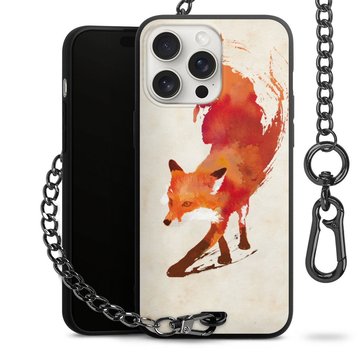 Die Handyhülle verfügt über eine mittig am unteren Rand platzierte Öse, an der die Metallkette stabil befestigt ist. Bestelle die Hülle einfach für Dein Smartphone-Modell, dann passt sie wie angegossen und Du brauchst sie bloß einmal anzudrücken. Handy in die Tasche, Karabiner an den Hosenbund – schon kann die Party starten.