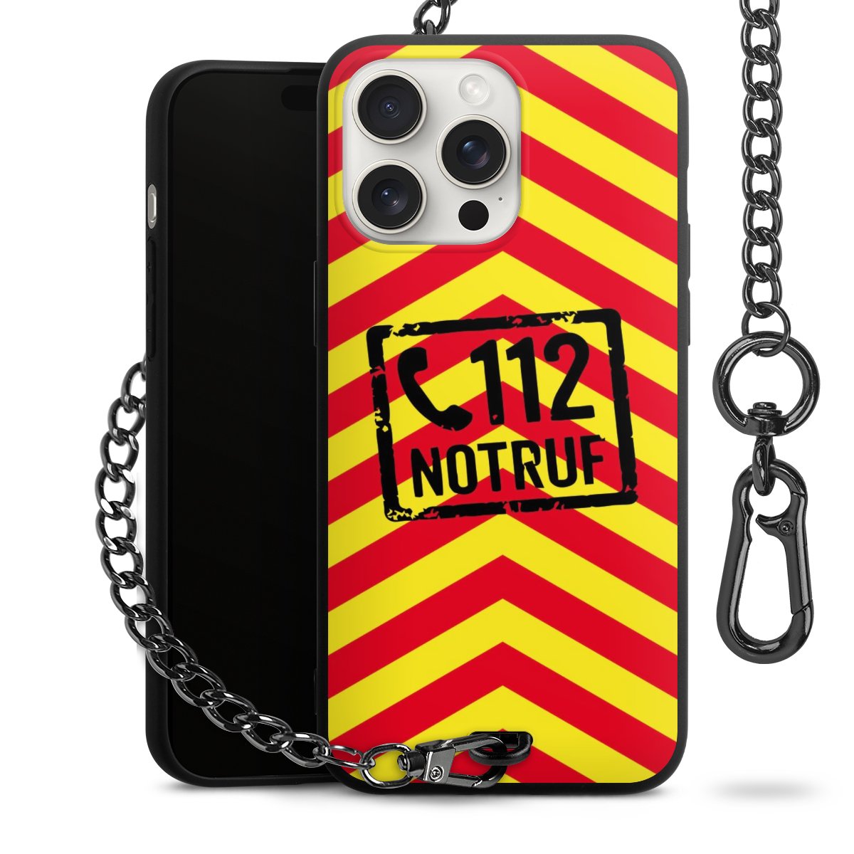 Die mattschwarze Silikon-Handyhülle besteht aus robustem TPU (thermoplastisches Polyurethan). Sie ist flexibel und schützt Dein Smartphone vor Stößen und Kratzern. Die Kette sowie der Karabinerhaken sind aus Metall in Gunmetal-Optik gefertigt. Für dieses Produkt kommen ausschließlich TÜV-geprüfte Materialien zum Einsatz.