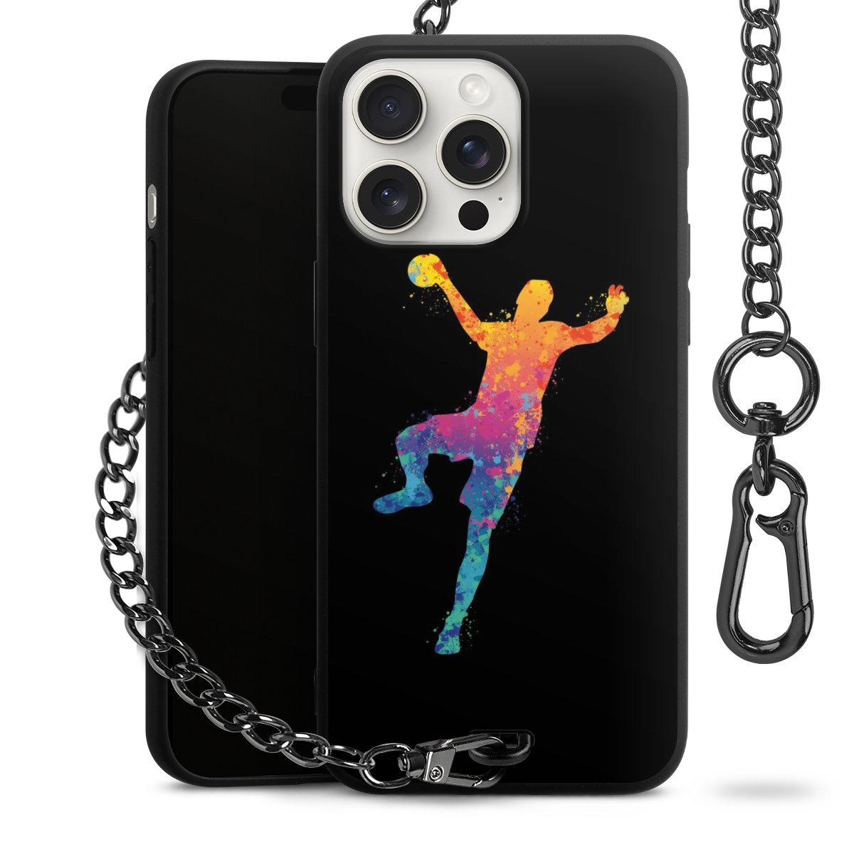 - Mattschwarze Handyhülle mit Metallkette