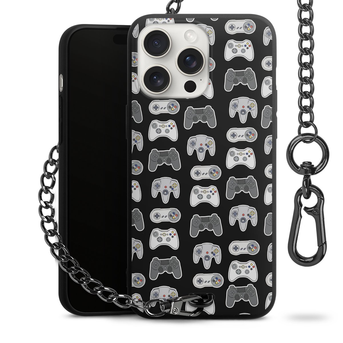 • Mattschwarze Handyhülle mit Metallkette