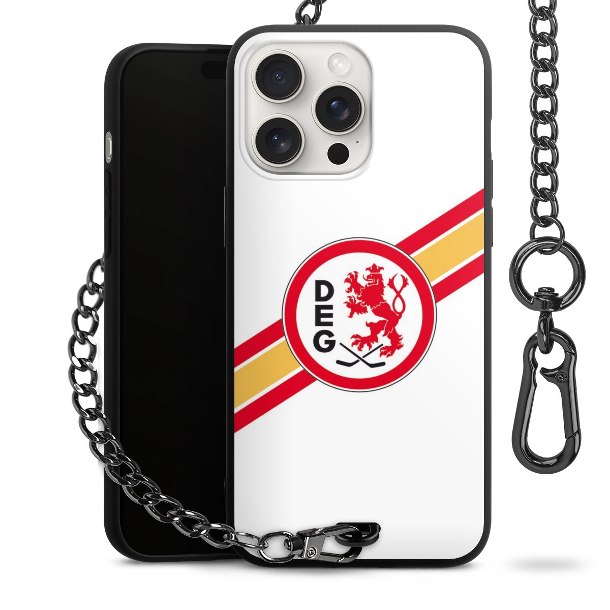 Die mattschwarze Silikon-Handyhülle besteht aus robustem TPU (thermoplastisches Polyurethan). Sie ist flexibel und schützt Dein Smartphone vor Stößen und Kratzern. Die Kette sowie der Karabinerhaken sind aus Metall in Gunmetal-Optik gefertigt. Für dieses Produkt kommen ausschließlich TÜV-geprüfte Materialien zum Einsatz.