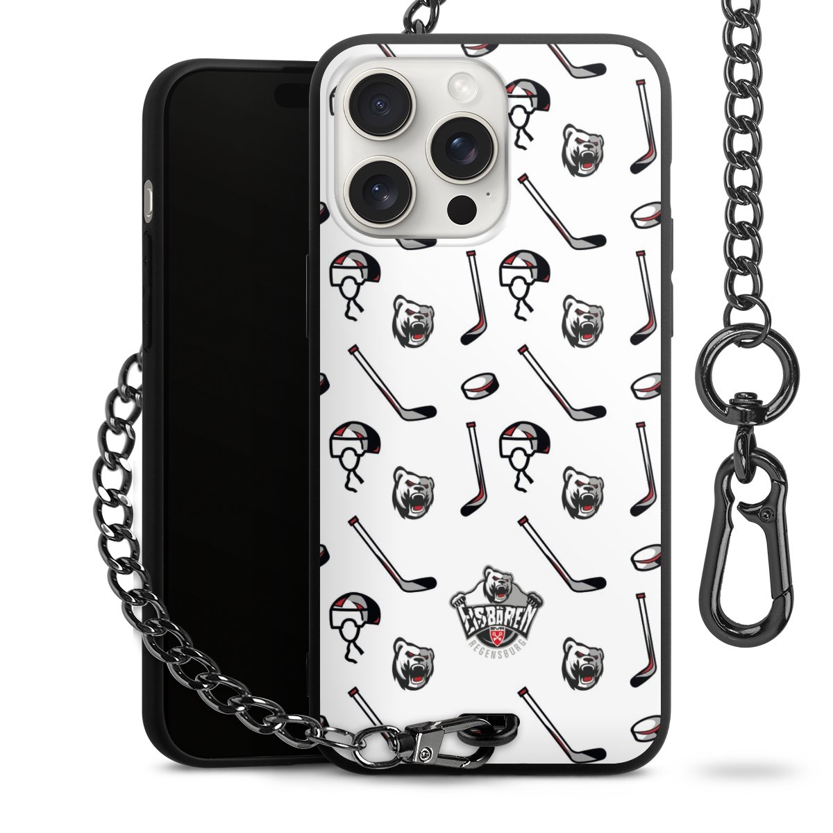 Die mattschwarze Silikon-Handyhülle besteht aus robustem TPU (thermoplastisches Polyurethan). Sie ist flexibel und schützt Dein Smartphone vor Stößen und Kratzern. Die Kette sowie der Karabinerhaken sind aus Metall in Gunmetal-Optik gefertigt. Für dieses Produkt kommen ausschließlich TÜV-geprüfte Materialien zum Einsatz.