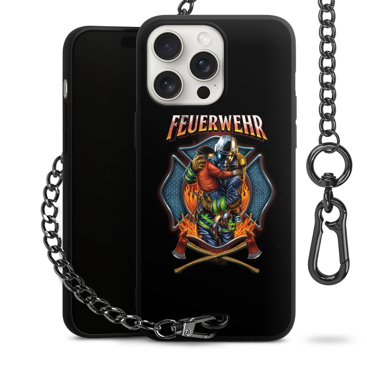 • Mattschwarze Handyhülle mit Metallkette