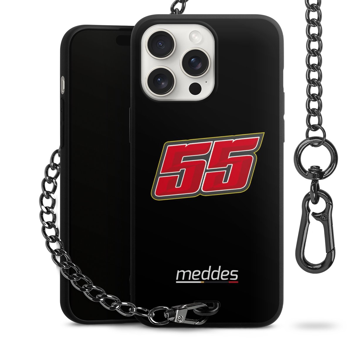 • Mattschwarze Handyhülle mit Metallkette