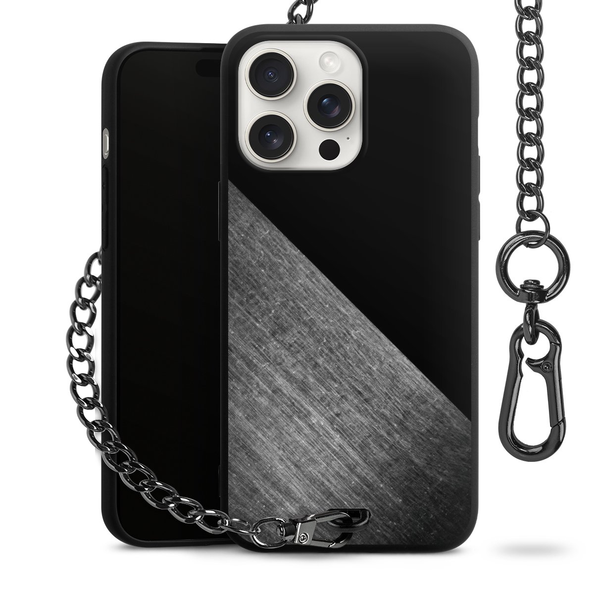 • Mattschwarze Handyhülle mit Metallkette